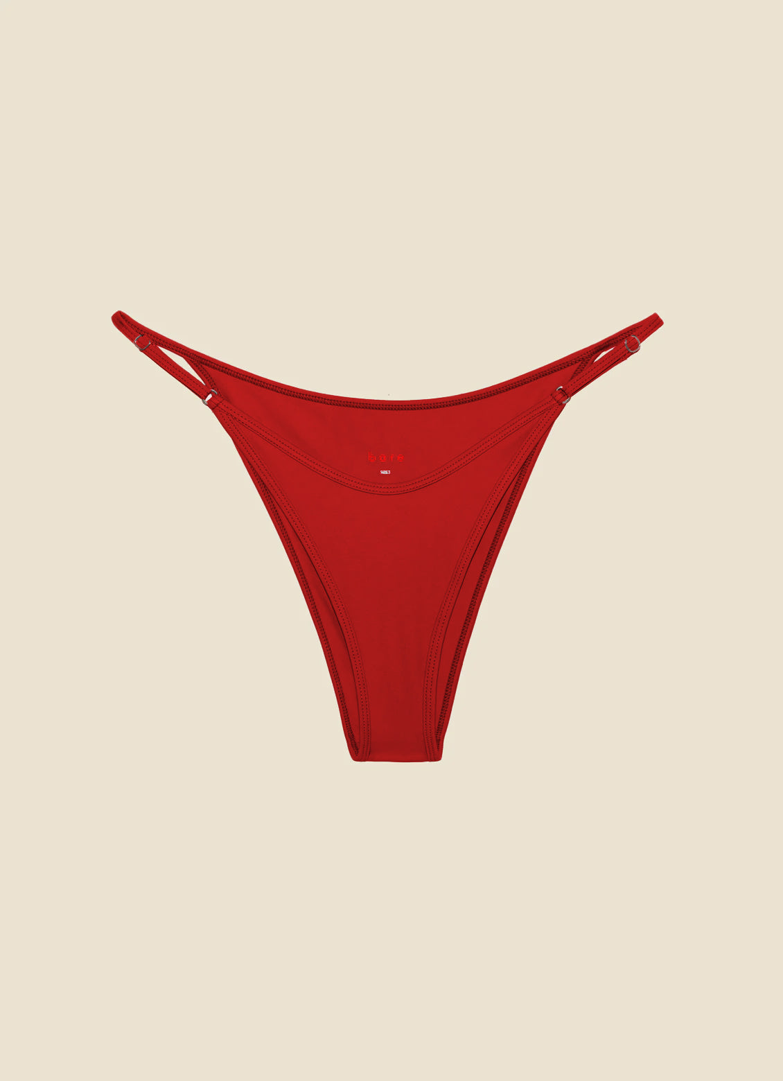 Liv bottom is a mid-rise bikini brief with an elegantly dipped v-shaped front and Brazilian back. Designed to a form-fitting silhouette with adjustable side straps for a better fit. The smooth ECONYL® fabric is soft and breathable with hyper-resistance to chlorine, SPF creams and suntan creams and oils. Comes fully lined.